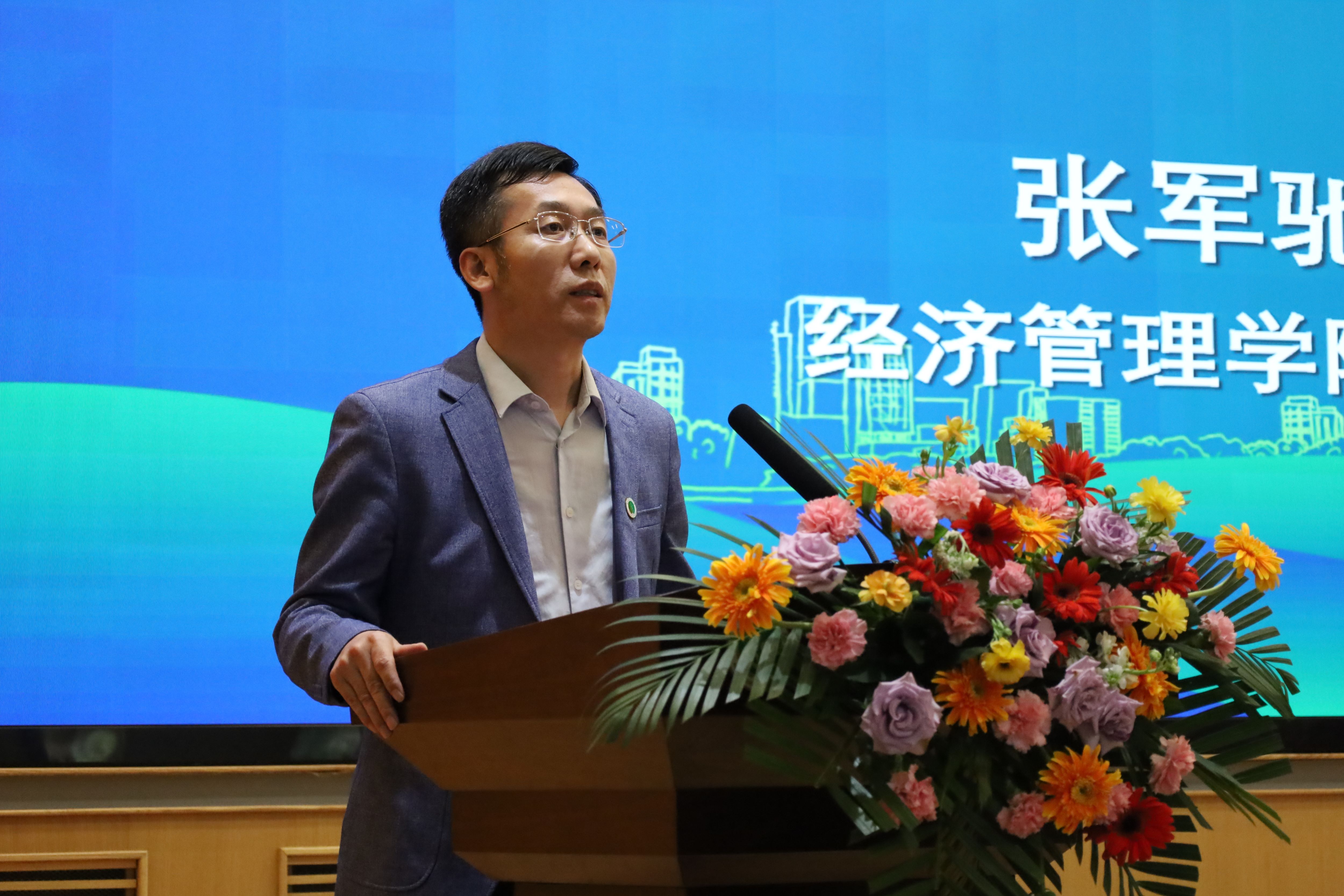 张军驰代表学院向来自各行业的校友代表表示热烈欢迎,对关心和支持学院事业发展的校友致以诚挚感谢,并为校友企业家唐玉明、吴显昆、张刚刚颁发了“协同育人导师”聘书。他表示,本次校友企业家论坛旨在加强知名校友企业家与学院学生的交流,发挥朋辈教育的引领力量,用校友们青春奋斗的故事点亮经管学子的理想之灯。