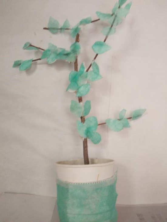 农经1801班杨琰伦利用遗留的干树枝和一次性口罩制作了充满希望的“春之树”,创意满满。在作品介绍中她说:“该作品象征着疫情即将过去,绿色希望会洒满中国,我们终将团聚,一起看看这美好的春天。”