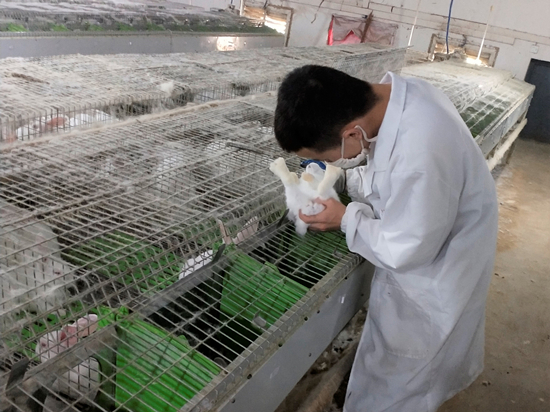 随后,队员们跟随工作人员来到兔子养殖场,里面的兔子数量多、个头大,皮毛品质好。在采访时,队员们发现,兔子繁殖能力极强,且因非洲猪瘟等因素的影响,兔肉在市场上供不应求。但由于每只兔子的利润较低,只有规模大的合作社才能有较高收益,农民自己养殖兔子很难赚钱。在提到企业中是否有兔子品种研究所时,工作人员表示,现在常见的肉兔品系都是法国的品种,虽然也有提升空间但提升空间不大,目前该厂主要研究改良獭兔的毛质,以及提高獭兔的生长速度。另外,在问及品牌培育时,负责人强调,品牌的发展离不开资金和技术的支持。一方面,对外宣传、品牌建设上都需要强大的资金投入,这些对于合作社来说都是负担。另一方面,若没有技术优势,产品在市场上也就没有竞争优势。