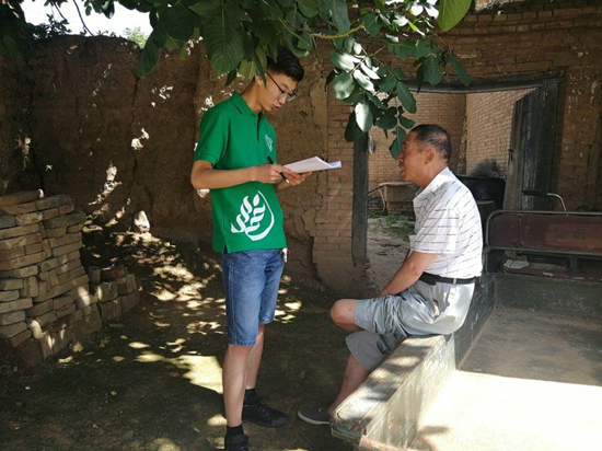 在调查过程中,队员们向果农认真讲解每一个问题,并详细记录果农们的回答。通过与果农们交谈,队员们了解了近几年苹果生产的现状:去年果园因大面积受冻,导致苹果产量低下,许多果农并未赚取利润;今年虽然雨水较少,气候偏旱,但产量较去年有所提升。除询问种植苹果的基本情况外,队员们还针对标准化生产的相关内容进行了更深入的了解。通过访谈和问卷调查,队员们发现,大部分种植户不太了解标准化生产的相关内容,而且家中缺乏青壮年劳动力,不易于接受新技术。但通过队员们向农户普及知识,果农们认识到标准化生产的优势,纷纷表示支持推广标准化生产。