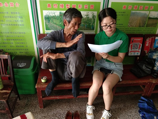 此次走访调研主要采取问卷调查的方式,为节省时间和保留精力,保证问卷的真实和有效性,调研队选取各家户主为此次调研的对象,因为大多数户主为一家之主,对家庭开支和经济状况有较为全面了解,对问卷涉及到的家庭种植问题有着更全面的认识。同时,队员们也会视情况采访户主以外的家庭成员。在调研的过程中,队员们发现,一些不以种植业为主要收入来源的街边小贩或其他从业人员,虽然家里也从事种植业,但他们往往无法提供详细的种植情况,不适合作为此次调研的对象。