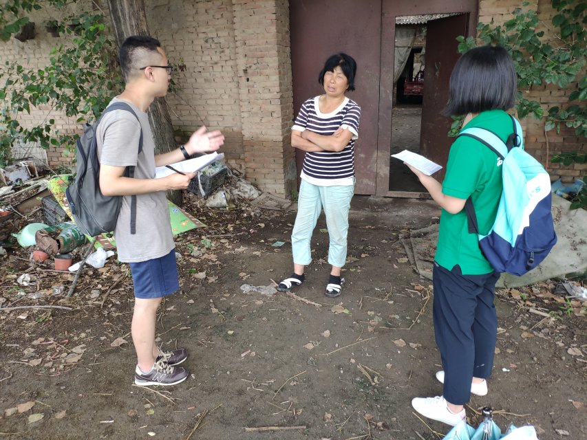 8月9日早上,调研队前往沣西新城庄摆樊村,开展实地调研。通过对村民们询问,队员们发现,庄摆樊村社会化集体农业设施配备比较完善,畜禽禁养政策落实较为彻底。在禁养之前,村里的养殖户大多饲养猪、羊、鸡、牛等畜禽,养殖的主要目的是作为家庭主要经济来源,或是产蛋产奶以供自家食用。禁养政策实行后,40%的农户选择利用现有耕地进行农业种植,例如种植小麦、玉米、蔬菜等;50%的村民通过政府提供就业岗位或自己寻找就业渠道外出打工,其中在本地打工的占多数;其余10%的原养殖户因年纪较大等身体原因,不适合转产就业,选择在家待业,主要靠养老金、子女贴补或政府补贴维持生计。