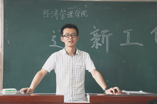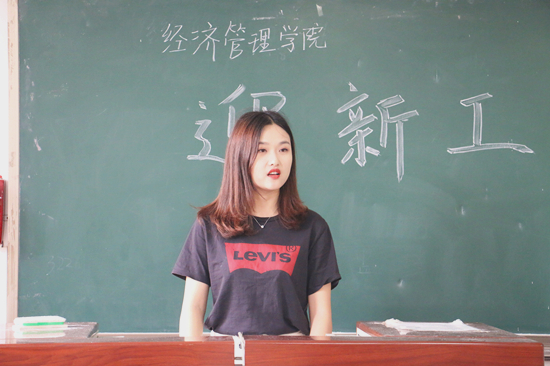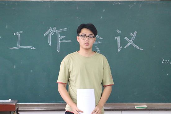 经管学院学生会主席林俊伟讲解迎新工作内容