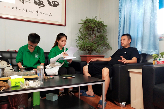 队员根据问卷内容采访社长
