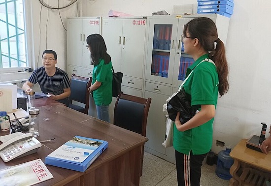 队员在与镇政府书记进行交谈