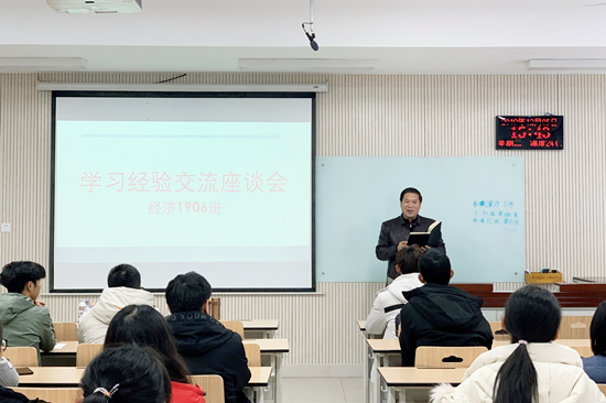 为营造积极向上的班级氛围,帮助学生更好地规划目标、确定方向,12月3日,经济1906班于N8611教室召开本学期第一次学习经验交流座谈会,班主任王兆华和班级全体学生到场。本次会议由王兆华老师主持,李东伟、邹宇琪、张文轩、陆爽作为分享人,从保研、就业两个方面展开本次经验交流。