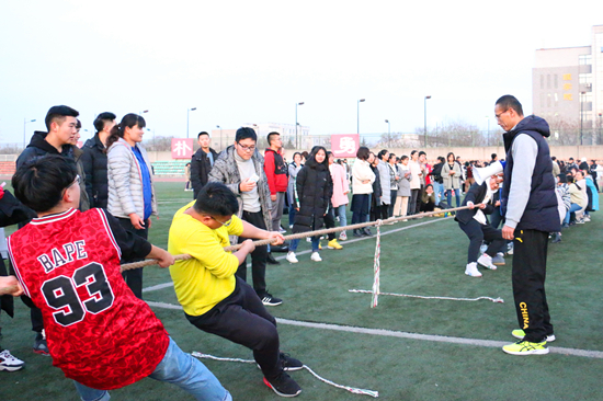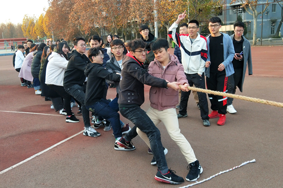 为丰富学生团组织生活,引导学生更好地践行社会主义核心价值观,丰富学生文体生活,学院于12月4日下午在南、北校区田径场同时开展拔河比赛。学院党委副书记张军驰、团委书记张静、团委副书记王冠英、学院17级和19级辅导员孙权、罗微、杨程方、王欣歌等辅导员老师和体育辅导员王鲜、王海峰观看比赛。学院全体大一和大三学生积极参与,南、北校区田径场上加油声不断,学生们热情高涨。