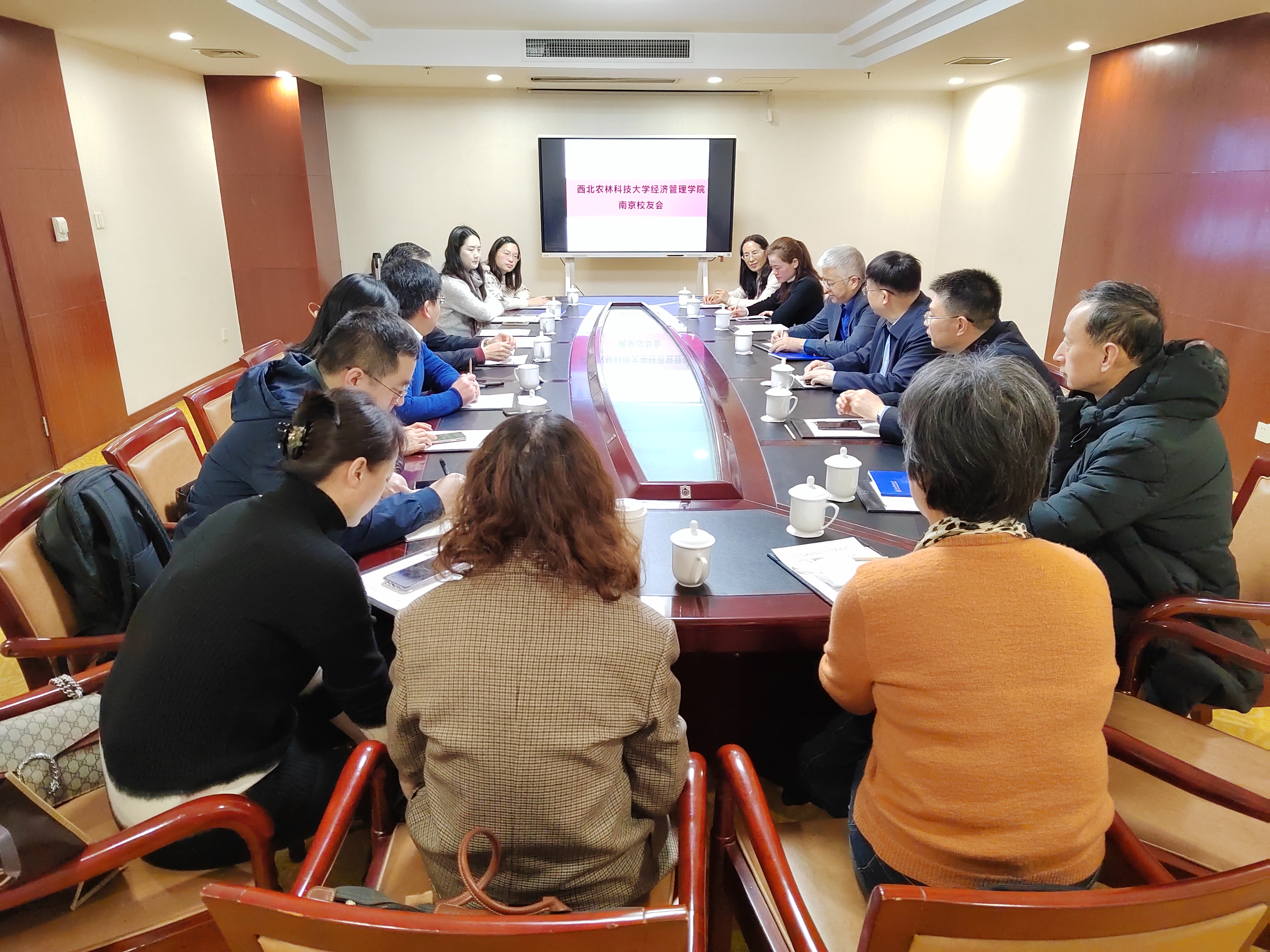 2月21日上午、下午,访问团成员分两路分别与南京经管学院校友、长江大学校友们开展了座谈会。会上,学院以“传承创新,融合发展”为主题,分别向校友们介绍了“万建中教育发展基金”项目,希望适逢学校90周年校庆活动,期盼校友们能常回家看看,不断为母校的发展壮大提建议、谋思路、聚合力。校友们也一致表示,将加大传承弘扬西农精神,立足本职岗位,积极协助拓展就业岗位、支持母校发展,在学校90周年华诞之际,相约母校,共庆90周年生日。