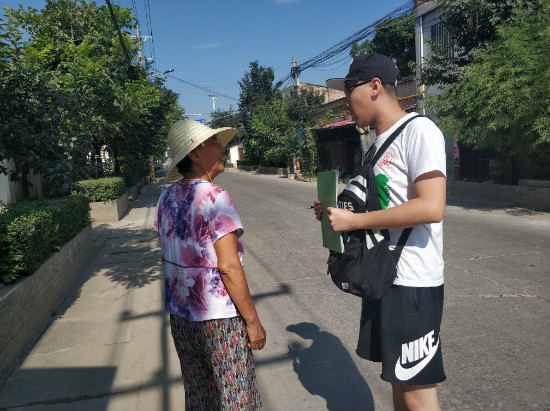 在后面的几天,队伍分别进入东卜村、寨西村、寨东村、石家村等地进行了实地调研,通过与村主任的沟通中,队员们初步了解到村中关于土地流转的一些基本情况,然后通过挨家挨户进行调研,进一步了解到农户对于土地流转的一些看法。骄阳似火,但是阻挡不了队员们调研的热情,队员们脸上的汗水,折射出耀眼的光芒,汗水滴落在地上,摔成一点点星光。一份份完成的问卷,是队员们最简单的渴望。